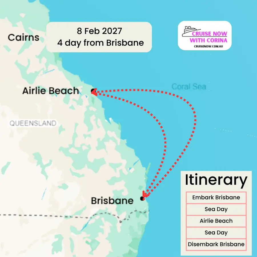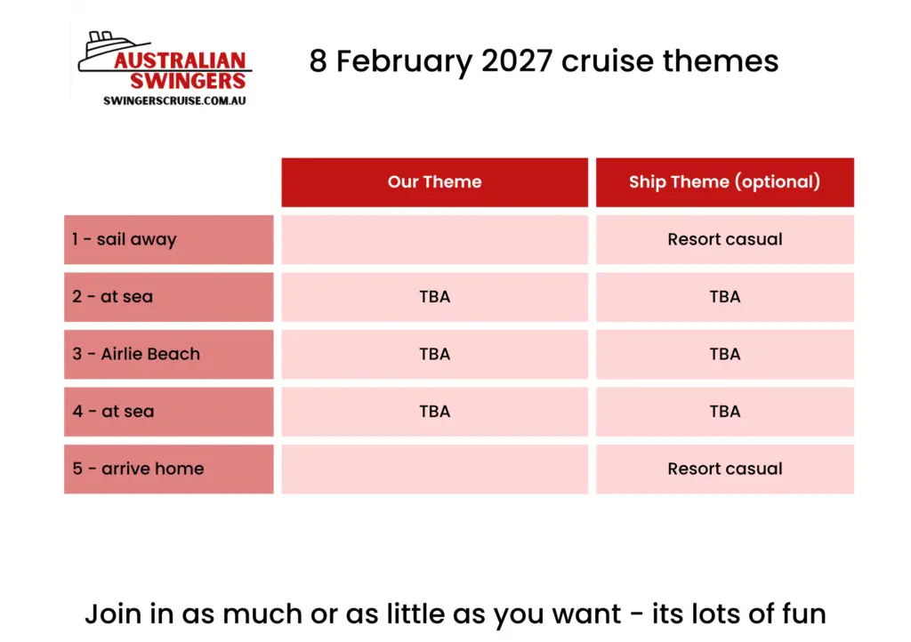 Set sail from Brisbane on 8 February 2027 for a four-night swingers cruise that blends tropical escape with a playful, social vibe — including a stop in beautiful Airlie Beach.